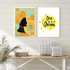 Kit 2 quadros oxum - saudação 33x24cm Moldura: madeira preta Informações do produto tire todas as suas dúvidas no descritivo abaixo: decoração para quarto, sala, cozinha, escritório, área gourmet e muito mais. Chega de paredes vazias medidas - cada peça tem 33x24cm a4 . Material do papel - papel fotográfico brilhante de altíssima resolução acabamento - todos os quadros são acompanhados de uma película de acetato para proteção da imagem. - os quadros são embalados de forma segura com plástico bolha com camada dupla de acordo com o tamanho dos quadros. Garantia - garantia de 3 meses. Meu quadro chegou. Como posso fixá-lo Você precisa apenas de um martelo e um prego, pois os quadros já vão acompanhados de penduradores. Esta é a forma mais indicada. Caso prefira, você pode utilizar uma fita dupla face neste caso, sugerimos de alta qualidade para evitar que descole e seu quadro caia . Como posso limpar meu quadro A limpeza é feita como um móvel comum da sua casa. Apenas um pano seco ou espanador são suficientes para tal