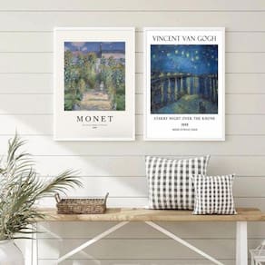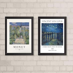 O Kit 2 Quadros Monet E Van Gogh Paisagens 45x34cm - Com Vidro é perfeito para decorar diversos ambientes, como quarto, sala, cozinha, escritório, área gourmet e muito mais. Composto por dois quadros com paisagens dos renomados artistas Monet e Van Gogh, esse kit traz um toque artístico e sofisticado para sua decoração.