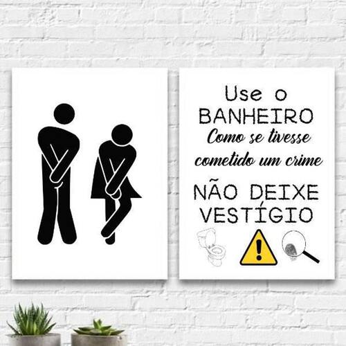 Kit 2 Quadros Para Banheiro Comercial 45X34Cm Moldura: madeira branca Informações do produto: decoração para quarto, sala, cozinha, escritório, área gourmet e muito mais. Chega de paredes vazias Medidas - cada peça tem 45x34cm a3 . Material do papel - papel fotográfico brilhante de altíssima resolução acabamento - todos os quadros são acompanhados de uma película de acetato para proteção da imagem. - moldura em madeira maciça na cor branca e pendurador móvel que pode ser retirado facilmente caso deseje fixar com fita dupla face. - os quadros são embalados de forma segura com plástico bolha com camada dupla de acordo com o tamanho dos quadros. - de 3 meses Meu quadro chegou. Como posso fixá-lo Você precisa apenas de um martelo e um prego, pois os quadros já vão acompanhados de penduradores. Esta é a forma mais indicada. Caso prefira, você pode utilizar uma fita dupla face neste caso, sugerimos de alta qualidade para evitar que descole e seu quadro caia . Como posso limpar meu quadro A limpeza é feita como um móvel comum da sua casa. Apenas um pano seco ou espanador são suficientes para tal Marca: Não Informado