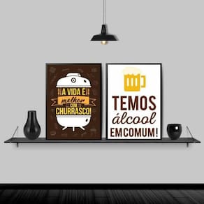 Kit 2 quadros para cantinho do churrasco 45x34cm Moldura: madeira preta Informações do produto tire todas as suas dúvidas no descritivo abaixo: decoração para quarto, sala, cozinha, escritório, área gourmet e muito mais. Chega de paredes vazias. Medidas - cada peça tem 45x34cm a3 . Material do papel - papel fotográfico brilhante de altíssima resolução acabamento - todos os quadros são acompanhados de uma película de acetato para proteção da imagem. - os quadros são embalados de forma segura com plástico bolha com camada dupla de acordo com o tamanho dos quadros. - de 3 meses. Meu quadro chegou. Como posso fixá-lo Você precisa apenas de um martelo e um prego, pois os quadros já vão acompanhados de penduradores. Esta é a forma mais indicada. Caso prefira, você pode utilizar uma fita dupla face neste caso, sugerimos de alta qualidade para evitar que descole e seu quadro caia . Como posso limpar meu quadro A limpeza é feita como um móvel comum da sua casa. Apenas um pano seco ou espanador são suficientes para tal Marca: Não Informado