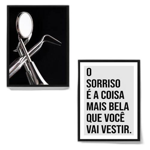 Kit 2 Quadros Para Consultório Odontológico 33X24Cm Preta