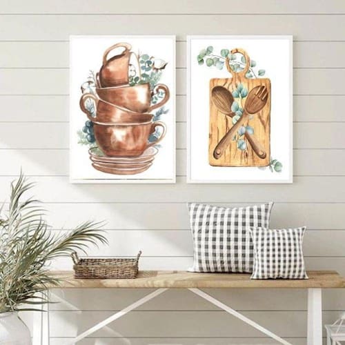 Kit 2 quadros para cozinha panelas e utensílios 33x24cm Moldura: madeira branca Informações do produto tire todas as suas dúvidas no descritivo abaixo: decoração para quarto, sala, cozinha, escritório, área gourmet e muito mais. Chega de paredes vazias medidas - cada peça tem 33x24cm a4 . Material do papel - papel fotográfico brilhante de altíssima resolução acabamento - todos os quadros são acompanhados de uma película de acetato para proteção da imagem. - os quadros são embalados de forma segura com plástico bolha com camada dupla de acordo com o tamanho dos quadros. Garantia - garantia de 3 meses. Meu quadro chegou. Como posso fixá-lo Você precisa apenas de um martelo e um prego, pois os quadros já vão acompanhados de penduradores. Esta é a forma mais indicada. Caso prefira, você pode utilizar uma fita dupla face neste caso, sugerimos de alta qualidade para evitar que descole e seu quadro caia . Como posso limpar meu quadro A limpeza é feita como um móvel comum da sua casa. Apenas um pano seco ou espanador são suficientes para tal Ean: 7896284123077