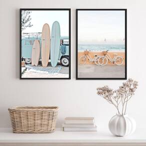 Kit 2 Quadros Fotografias Praia Kombi E Bicicleta 45X34Cm