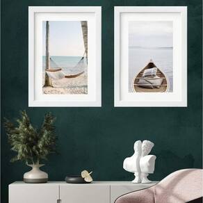 Kit 2 quadros praia relax - 60x48cm Moldura: madeira preta Informações do produto tire todas as suas dúvidas no descritivo abaixo: decoração para quarto, sala, cozinha, escritório, área gourmet e muito mais. Chega de paredes vazias medidas - cada peça tem 60x48cm . Material do papel - papel fotográfico brilhante de altíssima resolução acabamento - todos os quadros são acompanhados de vidro para proteção da imagem. - moldura em madeira maciça na cor preta ou branca conforme produto escolhido e pendurador. - paspatur branco com 7cm de largura - os quadros são embalados de forma segura com plástico bolha com camada dupla de acordo com o tamanho dos quadros. Garantia - garantia de 3 meses. Meu quadro chegou. Como posso fixá-lo Você precisa apenas de um martelo e um prego, pois os quadros já vão acompanhados de penduradores. Esta é a forma mais indicada. Como posso limpar meu quadro A limpeza é feita como um móvel comum da sua casa. Apenas um pano seco ou espanador são suficientes para tal