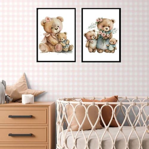 Kit 2 quadros quarto bebê ursinha vintage 33x24cm Moldura: madeira branca Informações do produto tire todas as suas dúvidas no descritivo abaixo: decoração para quarto, sala, cozinha, escritório, área gourmet e muito mais. Chega de paredes vazias medidas - cada peça tem 33x24cm a4 . Material do papel - papel fotográfico brilhante de altíssima resolução acabamento - todos os quadros são acompanhados de uma película de acetato para proteção da imagem. - os quadros são embalados de forma segura com plástico bolha com camada dupla de acordo com o tamanho dos quadros. Garantia - garantia de 3 meses. Meu quadro chegou. Como posso fixá-lo Você precisa apenas de um martelo e um prego, pois os quadros já vão acompanhados de penduradores. Esta é a forma mais indicada. Caso prefira, você pode utilizar uma fita dupla face neste caso, sugerimos de alta qualidade para evitar que descole e seu quadro caia . Como posso limpar meu quadro A limpeza é feita como um móvel comum da sua casa. Apenas um pano seco ou espanador são suficientes para tal
