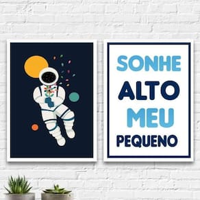 Kit 2 quadros quarto criança astronauta 33x24cm - com vidro Moldura: madeira preta Informações do produto tire todas as suas dúvidas no descritivo abaixo: decoração para quarto, sala, cozinha, escritório, área gourmet e muito mais. Chega de paredes vazias medidas - cada peça tem 33x24cm a4 . Material do papel - papel fotográfico brilhante de altíssima resolução acabamento - todos os quadros são acompanhados de vidro para proteção da imagem. - moldura em madeira maciça na cor preta e pendurador . - os quadros são embalados de forma segura com plástico bolha com camada dupla de acordo com o tamanho dos quadros. Garantia - garantia de 3 meses. Meu quadro chegou. Como posso fixá-lo Você precisa apenas de um martelo e um prego, pois os quadros já vão acompanhados de penduradores. Esta é a forma mais indicada. Como posso limpar meu quadro A limpeza é feita como um móvel comum da sua casa. Apenas um pano seco ou espanador são suficientes para tal