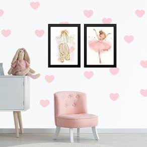 Kit 2 quadros quarto de menina tema bailarina 45x34cm Moldura: madeira preta Informações do produto tire todas as suas dúvidas no descritivo abaixo: decoração para quarto, sala, cozinha, escritório, área gourmet e muito mais. Chega de paredes vazias. Medidas - cada peça tem 45x34cm a3 . Material do papel - papel fotográfico brilhante de altíssima resolução acabamento - todos os quadros são acompanhados de uma película de acetato para proteção da imagem. - os quadros são embalados de forma segura com plástico bolha com camada dupla de acordo com o tamanho dos quadros. Garantia - garantia de 3 meses. Meu quadro chegou. Como posso fixá-lo Você precisa apenas de um martelo e um prego, pois os quadros já vão acompanhados de penduradores. Esta é a forma mais indicada. Caso prefira, você pode utilizar uma fita dupla face neste caso, sugerimos de alta qualidade para evitar que descole e seu quadro caia . Como posso limpar meu quadro A limpeza é feita como um móvel comum da sua casa. Apenas um pano seco ou espanador são suficientes para tal
