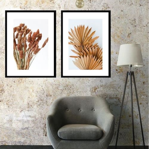Kit 2 quadros ramos folhas secas - 60x48cm Moldura: madeira preta Informações do produto tire todas as suas dúvidas no descritivo abaixo: decoração para quarto, sala, cozinha, escritório, área gourmet e muito mais. Chega de paredes vazias medidas - cada peça tem 60x48cm . Material do papel - papel fotográfico brilhante de altíssima resolução acabamento - todos os quadros são acompanhados de vidro para proteção da imagem. - moldura em madeira maciça na cor preta ou branca conforme produto escolhido e pendurador. - paspatur branco com 7cm de largura - os quadros são embalados de forma segura com plástico bolha com camada dupla de acordo com o tamanho dos quadros. - de 3 meses. Meu quadro chegou. Como posso fixá-lo Você precisa apenas de um martelo e um prego, pois os quadros já vão acompanhados de penduradores. Esta é a forma mais indicada. Como posso limpar meu quadro A limpeza é feita como um móvel comum da sua casa. Apenas um pano seco ou espanador são suficientes para tal Ean: 7890036249961