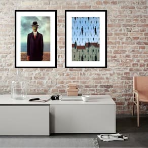 Kit 2 quadros rené magritte - 60x48cm Moldura: madeira branca Informações do produto tire todas as suas dúvidas no descritivo abaixo: decoração para quarto, sala, cozinha, escritório, área gourmet e muito mais. Chega de paredes vazias medidas - cada peça tem 60x48cm . Material do papel - papel fotográfico brilhante de altíssima resolução acabamento - todos os quadros são acompanhados de vidro para proteção da imagem. - moldura em madeira maciça na cor preta ou branca conforme produto escolhido e pendurador. - paspatur branco com 7cm de largura - os quadros são embalados de forma segura com plástico bolha com camada dupla de acordo com o tamanho dos quadros. Garantia - garantia de 3 meses. Meu quadro chegou. Como posso fixá-lo Você precisa apenas de um martelo e um prego, pois os quadros já vão acompanhados de penduradores. Esta é a forma mais indicada. Como posso limpar meu quadro A limpeza é feita como um móvel comum da sua casa. Apenas um pano seco ou espanador são suficientes para tal