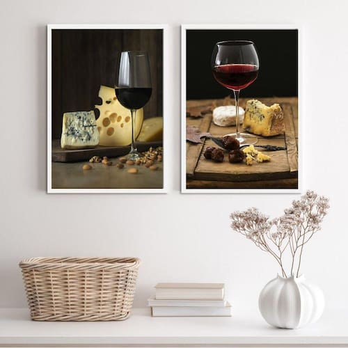 Garanta já o seu Kit 2 Quadros Fotografias Rusticas Queijos E Vinhos 24X18Cm e deixe seu ambiente ainda mais charmoso com essas belas imagens.