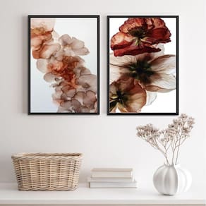 Kit 2 quadros para sala flores rosê e marrom 24x18cm - com vidro