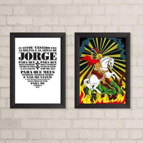Kit 2 Quadros São Jorge Oração 33x24cm - Moldura Branca