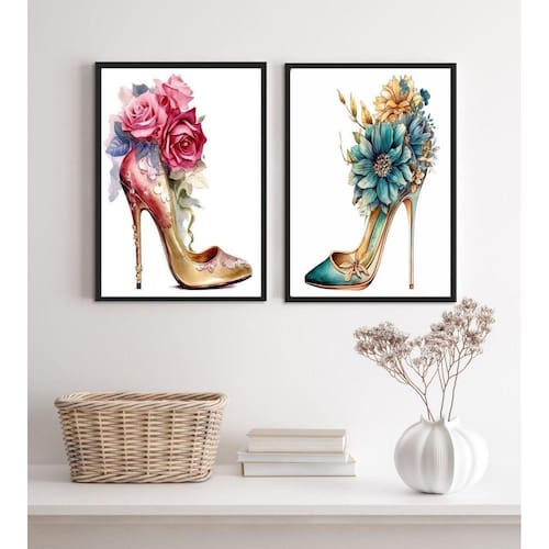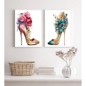 Kit 2 quadros sapatos de salto com flores 33x24cm Moldura: madeira preta Informações do produto tire todas as suas dúvidas no descritivo abaixo: decoração para quarto, sala, cozinha, escritório, área gourmet e muito mais. Chega de paredes vazias medidas - cada peça tem 33x24cm a4 . Material do papel - papel fotográfico brilhante de altíssima resolução acabamento - todos os quadros são acompanhados de uma película de acetato para proteção da imagem. - os quadros são embalados de forma segura com plástico bolha com camada dupla de acordo com o tamanho dos quadros. Garantia - garantia de 3 meses. Meu quadro chegou. Como posso fixá-lo Você precisa apenas de um martelo e um prego, pois os quadros já vão acompanhados de penduradores. Esta é a forma mais indicada. Caso prefira, você pode utilizar uma fita dupla face neste caso, sugerimos de alta qualidade para evitar que descole e seu quadro caia . Como posso limpar meu quadro A limpeza é feita como um móvel comum da sua casa. Apenas um pano seco ou espanador são suficientes para tal Ean: 7897760196608