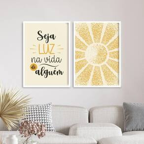 Kit 2 quadros seja luz na vida de alguém 45x34cm Cor: moldura branca Informações do produto tire todas as suas dúvidas no descritivo abaixo: decoração para quarto, sala, cozinha, escritório, área gourmet e muito mais. Chega de paredes vazias. Medidas - cada peça tem 45x34cm a3 . Material do papel - papel fotográfico brilhante de altíssima resolução acabamento - todos os quadros são acompanhados de uma película de acetato para proteção da imagem. - os quadros são embalados de forma segura com plástico bolha com camada dupla de acordo com o tamanho dos quadros. Garantia - garantia de 3 meses. Meu quadro chegou. Como posso fixá-lo Você precisa apenas de um martelo e um prego, pois os quadros já vão acompanhados de penduradores. Esta é a forma mais indicada. Caso prefira, você pode utilizar uma fita dupla face neste caso, sugerimos de alta qualidade para evitar que descole e seu quadro caia . Como posso limpar meu quadro A limpeza é feita como um móvel comum da sua casa. Apenas um pano seco ou espanador são suficientes para tal