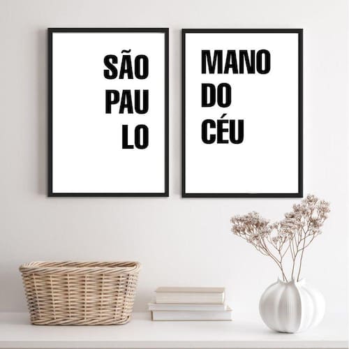 O Kit 2 Quadros São Paulo Mano do Céu é perfeito para decorar diversos ambientes da sua casa! Com medidas de 33x24cm A4 , cada peça possui uma moldura de madeira branca, que traz um toque de sofisticação ao ambiente. Além disso, os quadros são acompanhados de vidro para proteção da imagem.