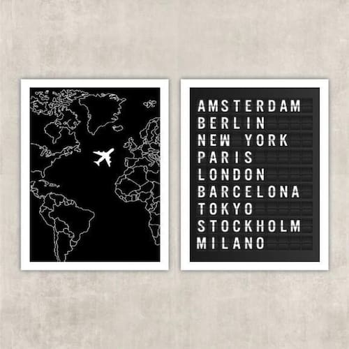 Kit 2 quadros viagem placa de aeroporto 45x34cm - com vidro Moldura: madeira branca Informações do produto tire todas as suas dúvidas no descritivo abaixo: decoração para quarto, sala, cozinha, escritório, área gourmet e muito mais. Chega de paredes vazias medidas - cada peça tem 45x34cm a3 . Material do papel - papel fotográfico brilhante de altíssima resolução acabamento - todos os quadros são acompanhados de vidro para proteção da imagem. - moldura em madeira maciça na cor preta e pendurador . - os quadros são embalados de forma segura com plástico bolha com camada dupla de acordo com o tamanho dos quadros. Garantia - garantia de 3 meses. Meu quadro chegou. Como posso fixá-lo Você precisa apenas de um martelo e um prego, pois os quadros já vão acompanhados de penduradores. Esta é a forma mais indicada. Como posso limpar meu quadro A limpeza é feita como um móvel comum da sua casa. Apenas um pano seco ou espanador são suficientes para tal