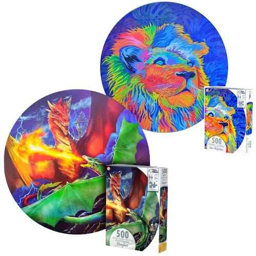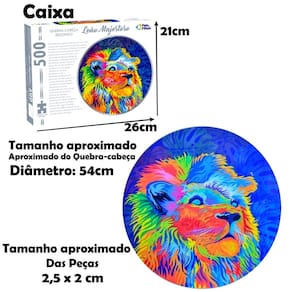 Quebra cabeça Redondo com linda imagem Do Leão Majestoso com 500 peças. Com um design inovador e cores vibrantes, este quebra cabeça proporciona a sensação de superação quando se consegue montar. As cores podem até ajudar, mas o grande segredo está no desenho das peças. Desafie-se!