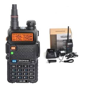 Rádio HT Dual Band UHF e VHF, Potência de Saída 5W/1W, 128 Canais, Programável por PC, Função Rádio FM, Lanterna LED.Indicador de carga da bateria