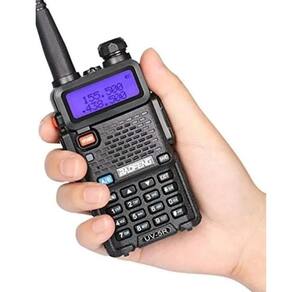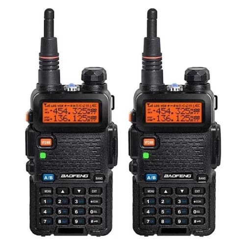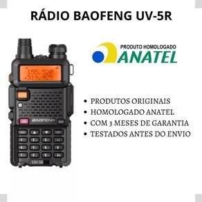 Kit 2 rádios comunicador Alcance 12 Km 16 Canais BF Uv-5r recarregável rádio segurança baofeng Rádio Baofeng UV5R com alcance de 12 quilômetros aproximadamente em campo aberto, como fazenda, sítio, praia, entre outros, e 800 metros aproximadamente em ambientes fechados, com divisórias, paredes por exemplo. Além de se comunicar, você poderá ouvir rádio FM nele, e possui uma lanterna com luz de LED bem forte em caso de emergências. Informações Técnicas: Marca: Baofeng; Modelo: UV5R; Cor: Preto; Potência de Saída: 5W / 1W; Voltagem: 110V 220V BIVOLT ; LED Vermelho: No Adaptador; Fonte da Base: 0.25A; Base para Recarregar a Bateria; Alerta de Bateria Fraca; Duração da Bateria: Até 3 Horas Uso Contínuo ; Memória: 128 Canais; Frequência: VHF 136174MHz / UHF 400520MHz; Programável por PC; Função Rádio FM: 65.0mhz 108.0mhz; 50 Tons CTCSS e 105 Códigos DCS; Digitalização de CTCSS e DCS; Entrada Direta CTCSS e DCS; Alerta de Emergência; Dual Band / Dual Display / Dual Stand by; Iluminação de Teclado; Display LCD: 35mm x 13mm; Lanterna: LED Luz Branca; Impedância da Antena: 50 Ohm Dual Band ; Tensão Operacional: DC 7.4V; Itens Inclusos: 02 Rádios Baofeng UV5R 02 Baterias 02 Clips de Cinto 02 Cordas de Segurança P/ Punho com 14,5cm 02 Fones de Ouvido Fio com 1,50m 02 Fontes para Carregador 02 Carregadores de Base 02 Antenas 11,8cm 02 Manuais de Instruções Inglês Marca: Não Informado