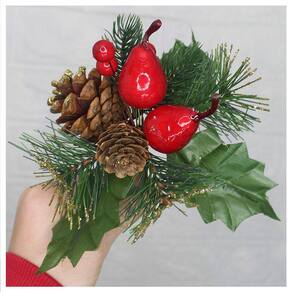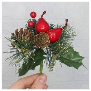 Possui 2 Ramos, com 2 Pera, 2 Pinhas, Cada peça. Altura: 16 cm Cor: Verde, Vermelho. Material: Plástico, Isopor.