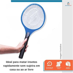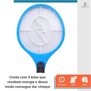 A Raquete Elétrica é ideal para matar insetos rapidamente sem sujeira em casa ou ao ar livre, sem produto químico e nenhuma poluição ambiental. Contando com 3 telas que recebem energia e desse modo consegue dar choque. Quando o inseto encosta nas telas, leva uma descarga elétrica e acontece um barulhinho de estalo.