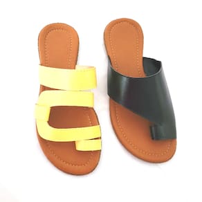 KIT 2 Rasteirinhas Modelos de Dedo Preta e Tiras Amarela - 35 - Preto