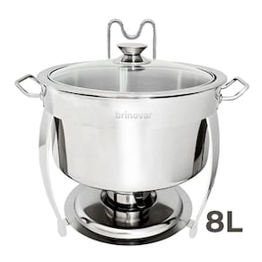 O Rechaud Redondo 8 Litros Brinovar tem a estrutura e o fogareiro em Aço Inox: altamente durável, resistente e fácil de limpar. Possui a tampa em vidro temperado, com saída de vapor. Vem com um prático apoio para tampa. A substituição da cuba é muito simples, podendo ser realizada durante o uso do produto, sem prejudicar o serviço
