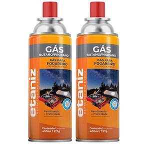 Kit 2 Refil Gás Fogareiro Etaniz 400ml 227g Butano Portátil Camping Churrasco Cozinha Maçaricos