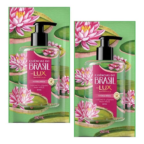 O Kit contém: 2 Sabonete Líquido Lux Essências do Brasil Vitória Régia com 240ml cada.