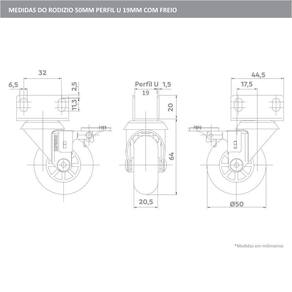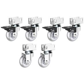 Kit 2 Rodizio De Gel Giratório Sem Freio + 4 Com Freio 50mm Perfil U 19mm Soprano