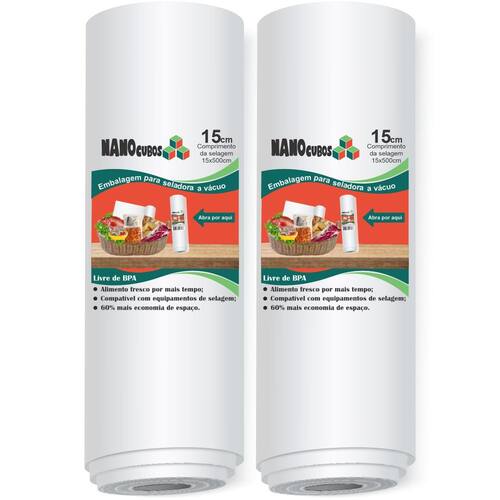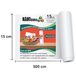 Kit 2 Rolos Nanocubos 15x500 Sacos Ranhura Seladora A Vácuo Embalagens 2 rolos NANOCUBOS 15 cm X 500 cm para seladoras a vácuo. Embalar produtos a vácuo é a melhor forma de mantê-los sempre protegidos por muito mais tempo. Ao embalar alimentos, a validade deles é completamente estendida, pois eles não terão nenhum contato com o ar e serão pouco afetados pela ação do tempo. Você pode embalar tanto alimentos crus como alimentos já preparados para serem consumidos em outro momento. Você economiza muito dinheiro e evita o desperdício Os sacos para vácuo Nanocubos são produzidos com alta tecnologia em Nylon Poli seguindo padrões de qualidade internacional. Possuem 12 micras, 3 barreiras de proteção, sem presença de BPA Não tóxicos e funcionam com equipamentos de embalagens a vácuo. Além de alimentos, é possível utilizá-lo com objetos pessoais, documentos ou utensílios, conservando-os como novos por muito tempo e aumentando sua vida útil. Características do produto: - Aparência: Transparente com ranhuras; - Forma disponível: Rolos, é possível montar sacos do tamanho que quiser; - Quanto ao uso: Reciclável pode utilizar várias vezes seguidas; - Iniciação ao rasgo: Difícil; - Propagação ao rasgo: Difícil; - Temperatura máxima de uso: 120 C; - Resistência a ácidos: Excelente mantendo o cheiro do alimento; - Resistência a óleos e gorduras: Excelente; - Segurança alimentar: Conserva o alimento. Conteúdo da Caixa 2- Rolos 15 cm X 500 cm. Políticas da loja: - : contra defeitos de fabricação, 90 dias; - Prazo de envio: imediato após a confirmação do pagamento; - Cancelamento: Realizamos a devolução total do dinheiro; Qualquer dúvida estamos à disposição Ean: 7896296926246