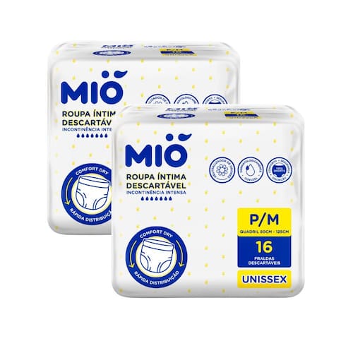 A Mió roupa íntima para o dia a dia! Imagine uma roupa íntima que protege com conforto e ainda cabe no seu bolso. A Roupa Íntima Mió foi desenvolvida exclusivamente para oferecer o bem-estar que você merece com a qualidade que você precisa! Pensamos de forma especial em uma solução que atendesse pessoas com incontinência urinária intensa da melhor forma possível. E adivinhe: deu certo! Cuidado em cada detalhe Dermatologicamente testados, nossos produtos garantem o cuidado com a pele, prevenindo qualquer tipo de irritação. Também contam um neutralizador de odores para que você se sinta fresco e confiante durante todo o dia. Máxima segurança e conforto Pensado para proporcionar liberdade e conforto, nosso shorts conta com uma cintura elástica e respirável, que se ajusta perfeitamente ao corpo. É a segurança que você busca aliada à praticidade de uma roupa íntima descartável. Com ele, você pode viver cada momento com tranquilidade. Tecnologia da Mió qualidade? Com a exclusiva tecnologia Comfort Dry, a Roupa íntima da Mió garante uma rápida absorção, mantendo você seco e confortável. Ela ainda contém uma distribuição adequada de fluidos e barreiras anti-vazamento, mantendo o ajuste ideal ao corpo em qualquer fluxo. Com Mió Adulto, você está protegido com um produto que trabalha para o seu bem-estar a cada instante. Economia garantida Além de todo o conforto e proteção, nossa roupa íntima vem em embalagens com 16 unidades, proporcionando mais economia para o seu bolso. É a combinação perfeita de qualidade e valor que você pode confiar! Ean: 7891522042523