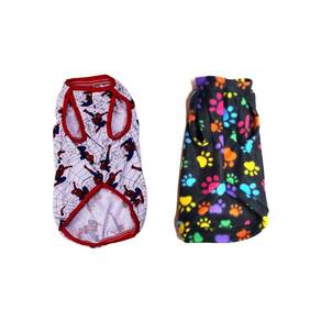 Kit pijama e suéter para cachorro. - pijama confeccionada em malha pv poliéster com viscose na cor branca; - pijama estampado; - acabamento do pijama em cotton vermelho; - pijama super fresquinho e gostoso; - tamanho do pijama: p; - suéter em tecido soft, super macio e quentinho; - o suéter é ótimo para os dias de frio; - suéter na cor preta com detalhes em colorido; - tamanho do suéter: pp; Medidas pijama - tamanho p: Pescoço: 19 cm de circunferência; abdômen/tórax: 32 cm de circunferência; comprimento: 30 cm. Medidas suéter - tamanho pp: Pescoço: 17 cm de circunferência; abdômen/tórax: 27 cm de circunferência; comprimento: 24 cm. Marca: Nicapet