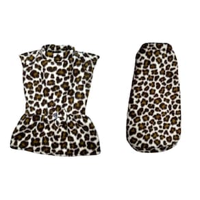 Vestido e suéter para cachorros de inverno. - ambos super leves e macios, em tecido soft; - laváveis na maquina ou na mão; - cor: estampa de onça; - os dois no tamanho pp; Medida - tamanho pp: Pescoço - 17 cm de circunferência; abdômen/ tórax - 27 cm de circunferência; comprimento - 24 cm. Marca: Nicapet