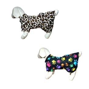 Kit 2 vestidos de inverno para cachorro. - vestidos no tecido soft; - lavável em maquina e na mão; - ótimo para usar nos dias de frio; - vestidos nas cores: preto colorido e onça; - laço na cor do vestido; Medida - tamanho P: Pescoço - 19 cm de circunferência; abdômen/tórax: 32 cm de circunferência; comprimento: 30 cm. Marca: Nicapet