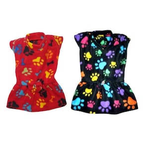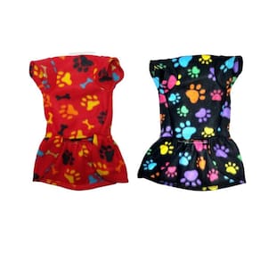 Kit 2 vestidos de inverno para cachorro. - vestidos no tecido soft; - lavável em maquina e na mão; - ótimo para usar nos dias de frio; - nas cores: preto e vermelho; - laço na cor do vestido; Medida - tamanho p: Pescoço - 19 cm de circunferência; abdômen/tórax: 32 cm de circunferência; comprimento: 30 cm. Marca: Nicapet Ean: 7896822593058