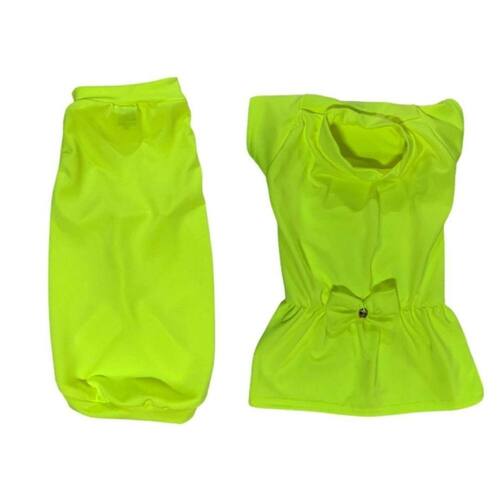 Especificações do vestido neon suplex: - vestido confeccionado no tecido suplex; - tecido mais leve e super macio, como roupas de academias; - super confortável e ótima opção para o calor; - recomendados para cães e gatos; - com um laço no vestidinho;