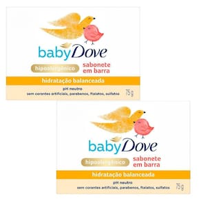 O Kit contém: 2 Sabonetes na Barra Baby Dove Hidratação Balanceada com 75g cada.