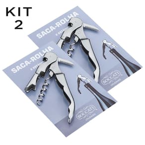 Kit 2 Saca-Rolha Dois Estágios Abridor Vinho Aço Escovado
