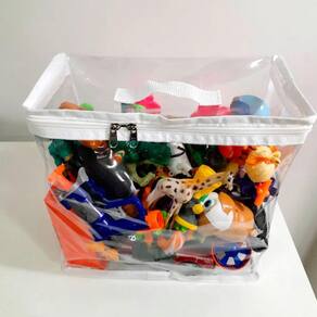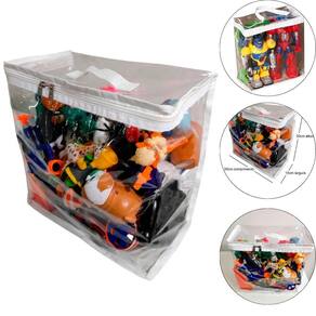 Kit 2 Saco Organizador Para Brinquedos Transparente Ziper Bloco Organizador Para Brinquedos Transparente 30x15x30 cm Mantenha a bagunça sob controle com o Bloco Organizador Transparente Feito de plástico resistente, com zíper reforçado e design compacto, é a solução perfeita para guardar brinquedos e itens pessoais com praticidade. Visualize tudo de forma rápida graças ao material transparente - ideal para o dia a dia em casa ou para organizar a mala nas viagens