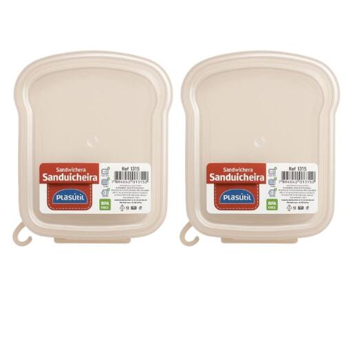 Kit com duas unidades do Porta Sanduíche Plasútil Caixa para Misto Quente e Lanche Livre de BPA