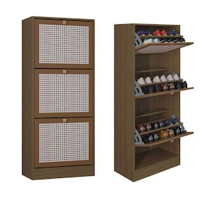 Kit 2 Sapateiras Tropical 3 Portas Multiuso Vertical Poquema Carvalho Procurando uma solucao inteligente e elegante para a bagunca de sapatos? Conheca o Kit com 2 Sapateiras Tropical 3 Portas Multiuso Vertical. Este kit foi pensado para quem deseja otimizar o espaco sem abrir mao de um design diferenciado, transformando seu quarto, closet ou lavanderia em um ambiente mais organizado e cheio de personalidade. Chega de calcados espalhados! Com a estrutura vertical, voce ganha espaco e praticidade, mantendo tudo arrumado e de facil acesso.