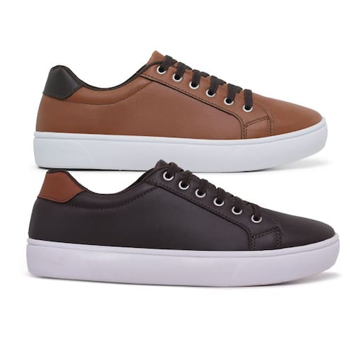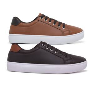 Kit 2 Sapatênis Casual Masculino Confort SF Ajuste Elástico - 37 - Marrom