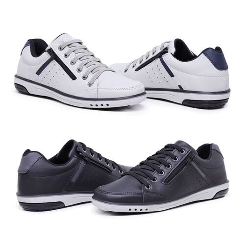Kit 2 Sapatênis Casual Masculino Fechamento Zíper e Elástico - 43 - Branco