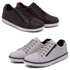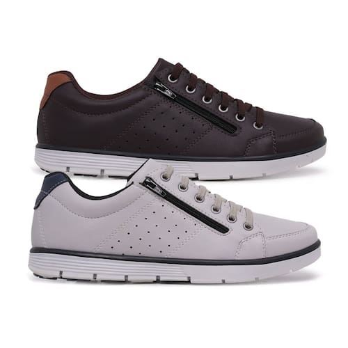 Kit 2 Sapatenis Casual Social Conforto com Zíper e Cadarço - 43 - Marrom Chocolate