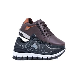Kit 2 Sapatênis Masculino Ziper & Tênis Casual com cadarço - 42 - Marrom Chocolate