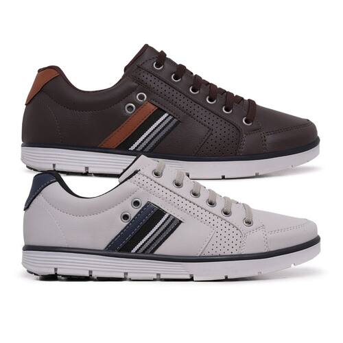 Kit 2 Sapatênis Masculinos com Zíper e Cadarço Elástico - 43 - Marrom