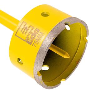 Kit com 2 Serra Copo Diamantada 75mm com Haste Pino Guia Eda Serra copo diamantada com haste e pino guia, indicada para cortar telhas, tijolos, cerâmicas, azulejos, concreto, parede, pedras, refratários, granitos entre outros. - Marca: Eda - Jogo exclusivo com 2 serras copo - Diâmetro: 75mm - Serra Copo com haste e pino guia - Ideal para alvenaria - Comprimento da haste: 170mm - Diâmetro do encaixe da haste no mandril: 8,8mm - Altura externa do copo: 47mm - Altura da borda diamantada: 7mm - Espessura do copo: 3,5 mm - Facilita a realização de furos de grandes diâmetros em tempo reduzido - Indicada para cortar telhas, tijolos, cerâmicas, azulejos, concreto, parede, pedras, refratários, granitos entre outros. - Quando utilizada com o pino guia, deve-se fazer um furo com broca de vídea antes. - Nunca utilizar o equipamento na função IMPACTO/MARTELETE - Haste e corpo em aço carbono - Camada de corte: Pasta abrasiva com diamante - Utilize com refrigeração - Peso bruto: 500 gramas - : 90 dias Marca: Não Informado Ean: 7734625975315