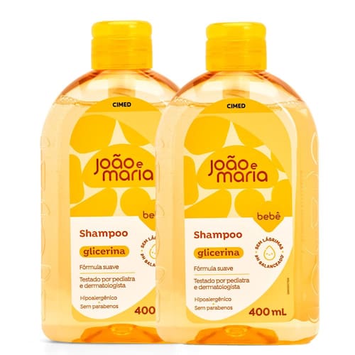 Shampoo João e Maria Bebê Glicerina 400ml O Shampoo João e Maria Bebê Glicerina foi desenvolvido especialmente para cuidar dos cabelos delicados dos bebês. Sua fórmula contém glicerina, que hidrata e limpa suavemente sem ressecar, deixando os fios macios e perfumados. Dermatologicamente e pediatricamente testado, é hipoalergênico, livre de parabenos e possui pH balanceado, garantindo máxima segurança para a pele sensível dos pequenos. Além disso, sua tecnologia sem lágrimas torna o banho ainda mais agradável e sem irritações. Aposte no carinho e proteção do Shampoo João e Maria e proporcione mais conforto ao bebê a cada banho! Ean: 7897947620179
