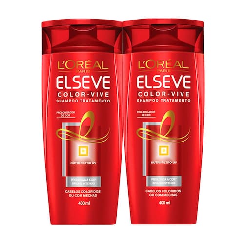 SHAMPOO ELSÉVE COLORVIVE Prolonga a cor brilho intenso cabelos coloridos ou com mechas. Especificidades dos cabelos coloridos ou com mechas: Os cabelos coloridos são mais sensíveis que os naturais. Lavagens repetidas, raios UV e poluição aceleram o ressecamento: a cor desbota perde o brilho, por isso, eles precisam de um tratamento especifico. O segredo de uma cor prolongada: Sua fórmula exclusiva age em 2 níveis: Nutre profundamente o cabelo, transformando a fibra em uma matéria flexível e sedosa. Com FILTRO UV protege e impermeabiliza os fios contra as agressões externas e realça a cor do cabelo. Resultados comprovados: Cabelos nutridos e protegidos para uma cor visivelmente prolongada com brilho intenso. Conselho de uso: Aplique nos cabelos molhados e massageie suavemente. Enxágüe repita a operação se necessário. Para cabelos ainda mais protegidos e cor prolongada, utilize a linha completa ELSEVE COLOR- VIVE. Precauções: Manter fora do alcance das crianças. Caso o produto caia nos olhos, lave-os imediatamente com água. Ean: 7899026417885 Ean: 7899026417885